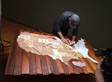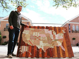 "America At The Seams" is a baseball artwork storytelling project originally crowd-funded on Kickstarter in April 2016. Artist Nathan Rueckert was commissioned to create a 5 foot wide map of the United States from old, tattered baseballs obtained directly from 50 persons in 50 states with powerful stories of hope, perseverance, overcoming adversity, and how baseball definitively unites our country. Baseball writer, Ethan Bryan, helped tell these stories in an iconic hardcover coffee table book first published in November 2017.