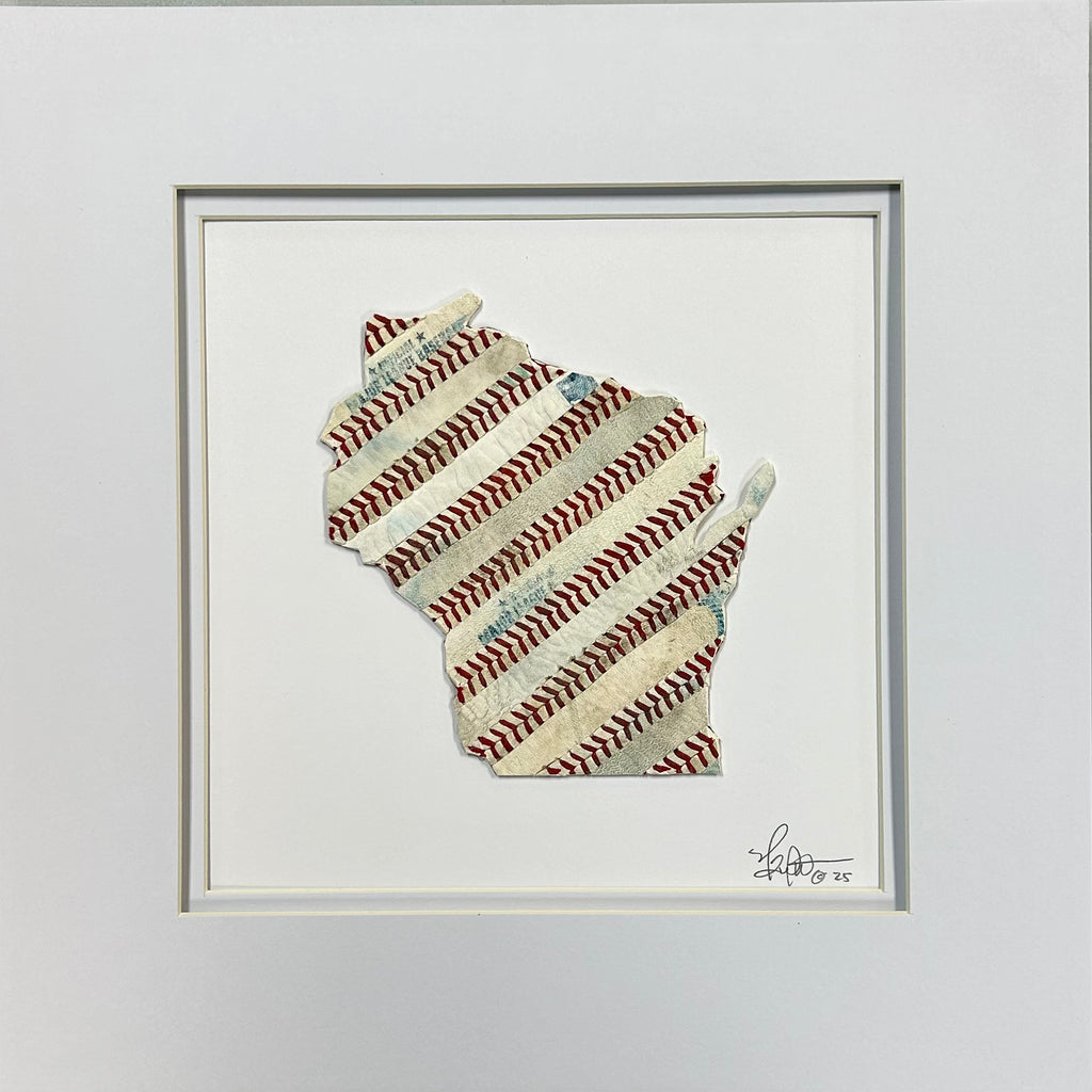 Show your state pride by commissioning a custom piece made out of the leather and seams of baseballs in the shape of your state.